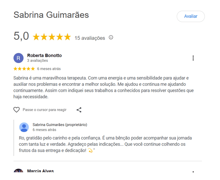Ótima terapeuta, Sabrina tem uma experiência incrível, já me ajudou e ajudou minha família a entender mais sobre a espiritualidade, que você ajude muitas famílias, tem um grupo de Reiki gratuitamente que ela faz. Gratidão Sabrina 🙏